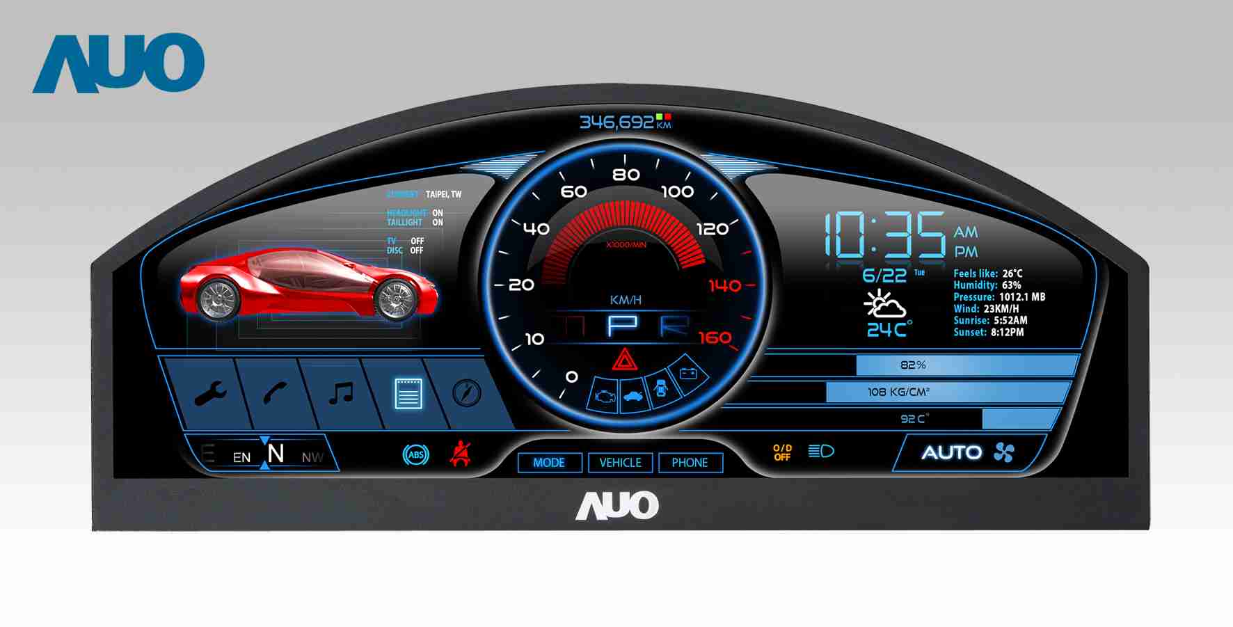 PG国际 12.3吋超高解析异型切割车用面板,,,,拥有流线外观及精细画质