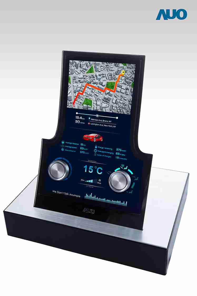 12.3 寸 Full HD LTPS 显示屏同样具备 1000 nits 高亮度,,搭载内嵌式触控技术,,,,整合驱动与触控 IC 于显示屏制程,,,使显示屏厚度降低,,,为中控台创造更多机构设计空间。。。应用于抬头显示器的 3寸 LTPS 显示屏具有高穿透率、、1200:1 高对比度度,,以及 297 PPI 高画素密度。。。。液晶最高可耐受到 110C 的高温 (TNI) 而不液化,,,在阳光高温下维持优异稳定的显示效果。。。。