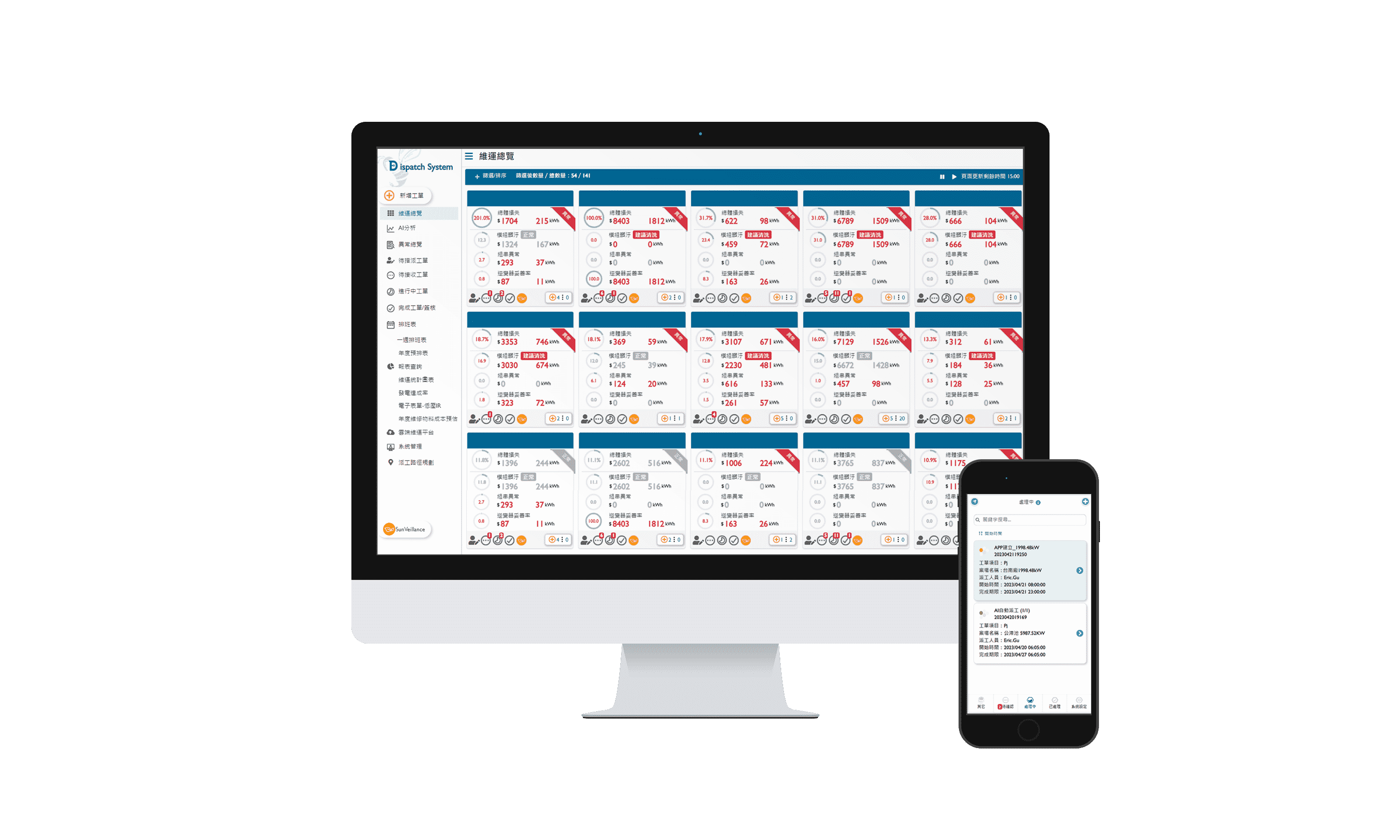 全流程运维管理包括云端监控工具、、、、AI分析与智慧自动派工及运维APP,,,,实现电厂自主管理。。。